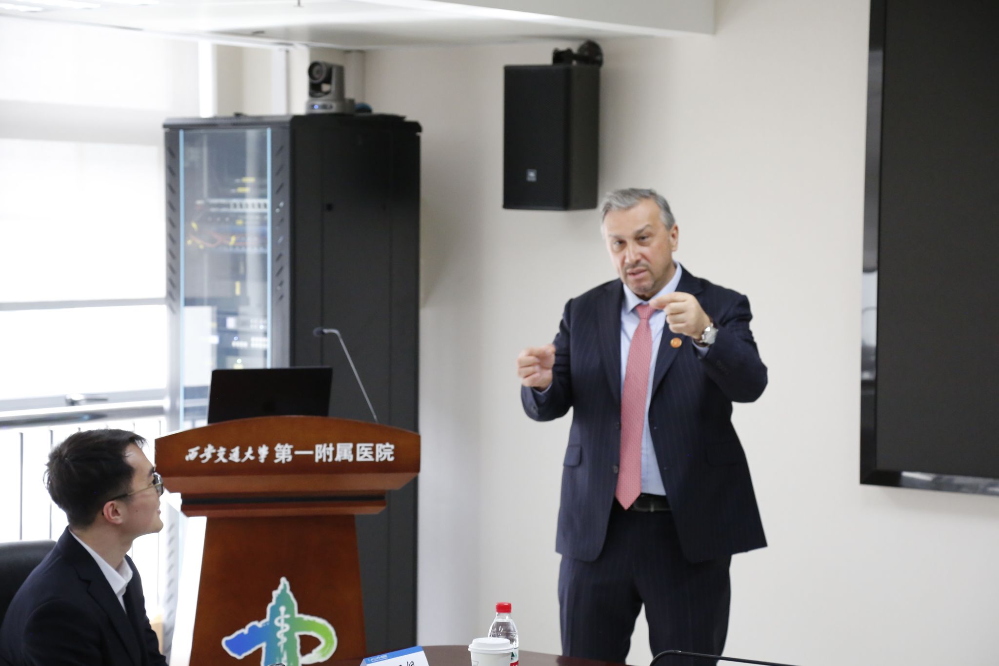吕毅院长对Metin Sitti教授的到访表示热烈欢迎。他介绍,磁导航(磁控)是西安交通大学磁外科团队长期深耕的核心技术方向,团队已成功创建磁导航气管插管技术,研发配套机器人并完成临床试用,同时在磁导航胃管置入装置研究中取得阶段性成果。吕毅院长表示,Metin Sitti 教授是磁控微型医疗机器人领域国际权威专家,希望以此次交流为契机,深化磁控微型医用机器人等医疗装备研发与临床应用合作,推动西安交通大学与土耳其科奇大学在人才培养、科学研究等领域的全方位合作。
