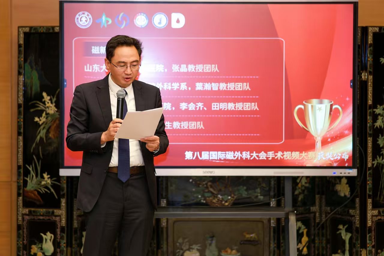 大会执行主席吴荣谦教授宣读了首届“磁引未来·暴露有方”磁外科手术视频大赛结果。来自全国多家医院的11支团队凭借其精湛的手术技艺和对磁外科技术的卓越应用,分别荣获“磁创妙手奖”、“磁新能手奖”和“磁驭巧手奖”三大奖项,充分展现了我国磁外科临床实践的蓬勃生机。