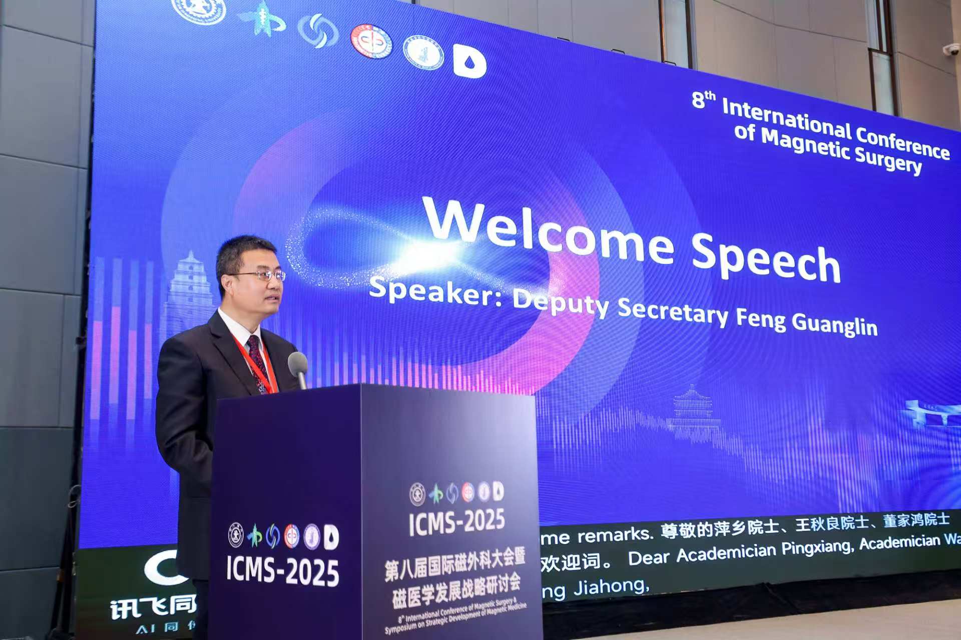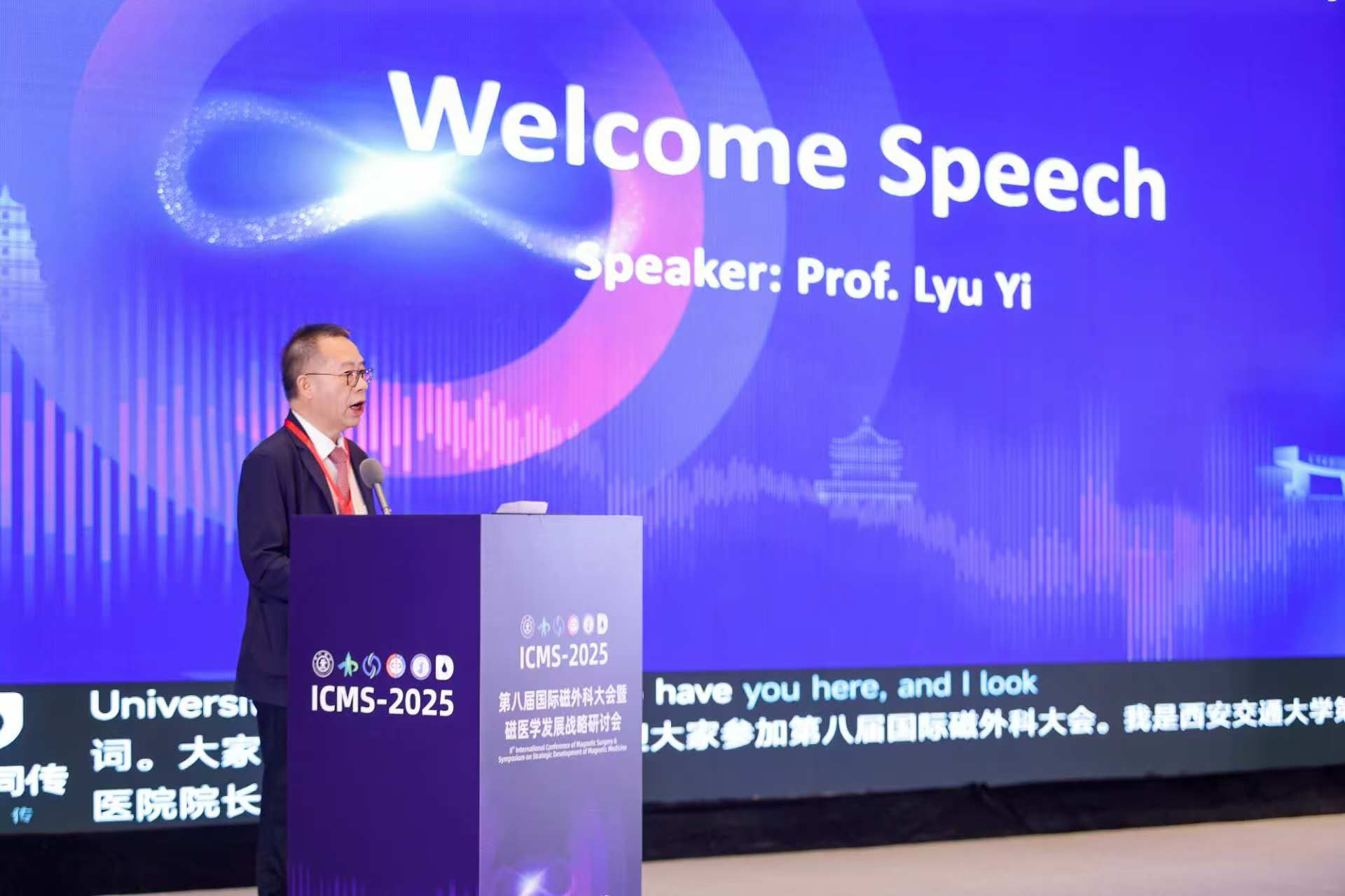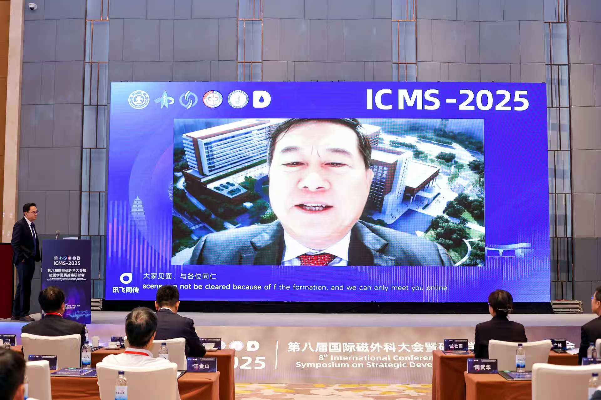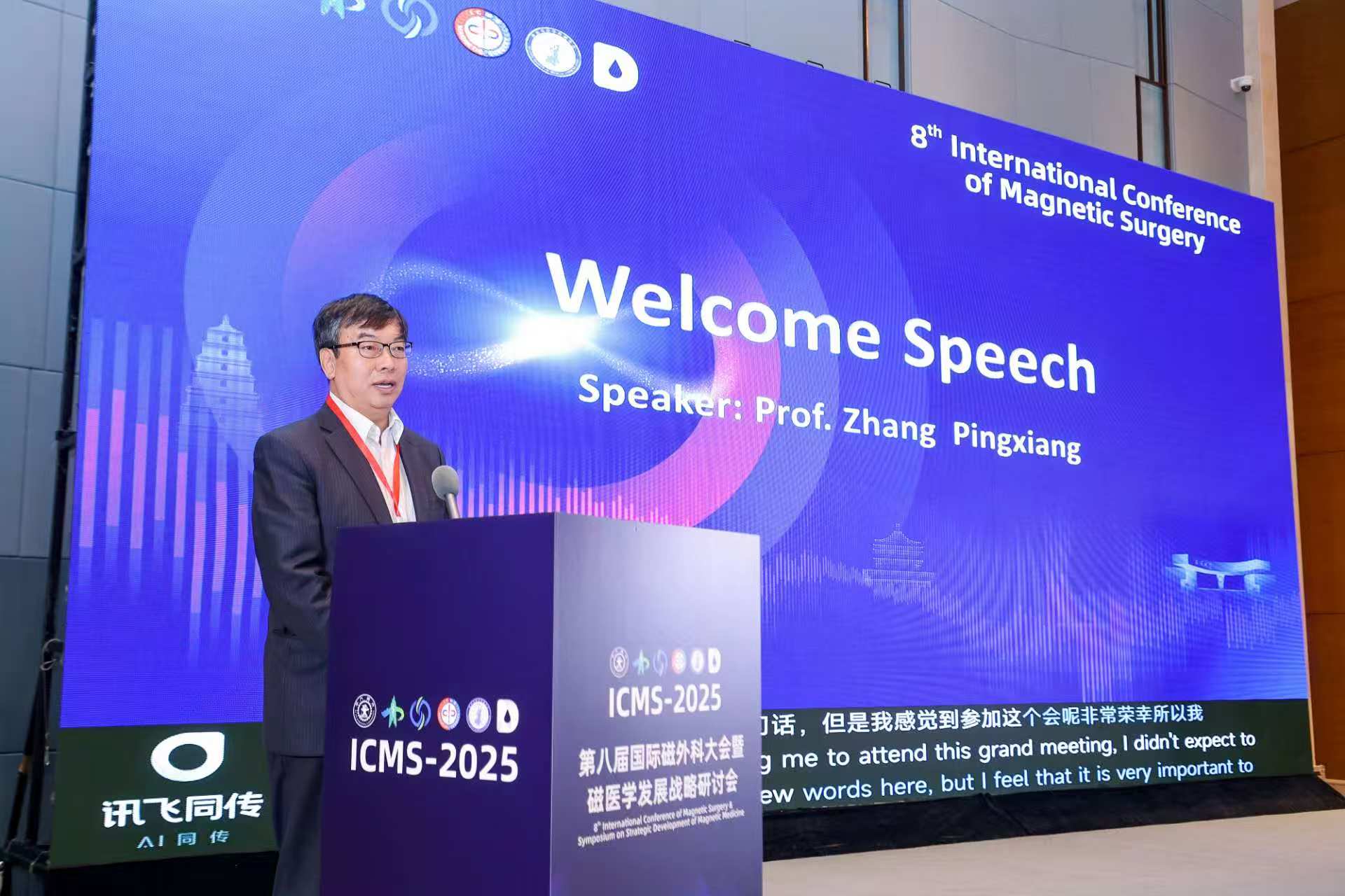 大会主席、中国工程院院士董家鸿通过线上方式致辞。他指出,磁外科不仅是一项技术突破,更是对现代外科理念的一次深刻重塑,并高度赞扬了吕毅教授团队的坚守与执着。大会主席、西安交通大学第一附属医院吕毅教授致辞。他向长期支持磁外科发展的各位同仁表示感谢,并希望通过大家的共同努力,为全球医学发展贡献更多的“中国智慧”和“中国方案”。西安交通大学副校长洪军致辞。他表示,磁外科是学校传承“西迁精神”、深化医工交叉的典范,展现了广阔的应用前景与强大的创新活力。陕西省委科技工委副书记兰壮丽致辞。她强调,省科技厅会一如既往大力支持交大一附院建设国家医学中心以及磁外科的发展。西安交通大学第一附属医院党委副书记冯广林致辞。他介绍了医院作为国家医学中心创建单位,在磁外科领域积极布局,并获得了国际同行的高度肯定。中国工程院院士张平祥致辞。他赞誉磁外科是医工交叉合作结出的硕果,并对中国原创技术引领世界前沿感到自豪,鼓励与会同仁继续深化合作,共同推动磁外科事业迈向新的高峰。