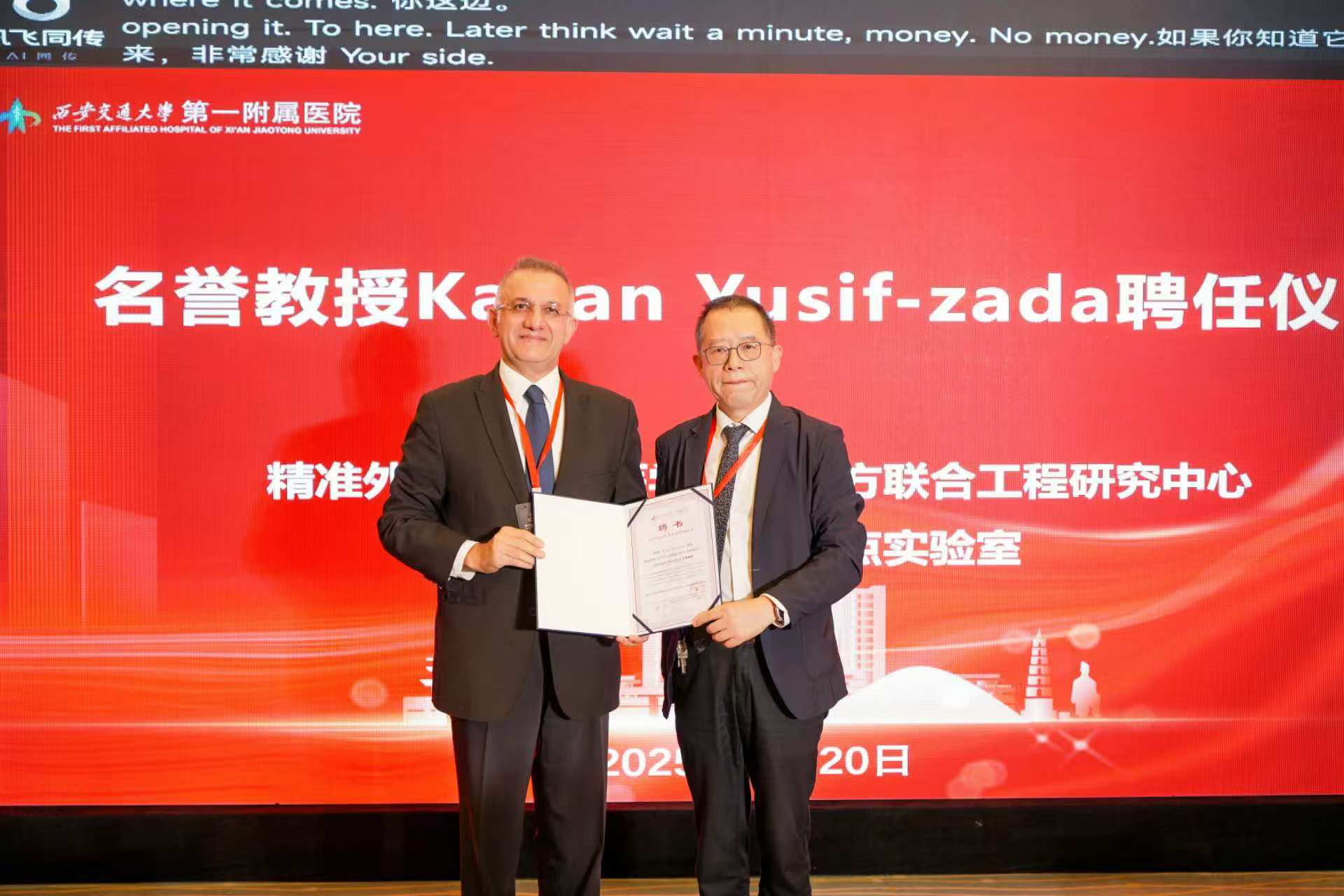 在精彩的专题报告环节结束后,为进一步促进国际学术交流与合作,大会特聘任韩国峨山大学Deok-Bog Moon教授为西安交通大学第一附属医院肝胆外科的名誉教授。同时,来自阿塞拜疆的Kanan Yusif-zada教授也被授予精准外科与再生医学国家地方联合研究中心、陕西省磁医学重点实验室名誉教授。