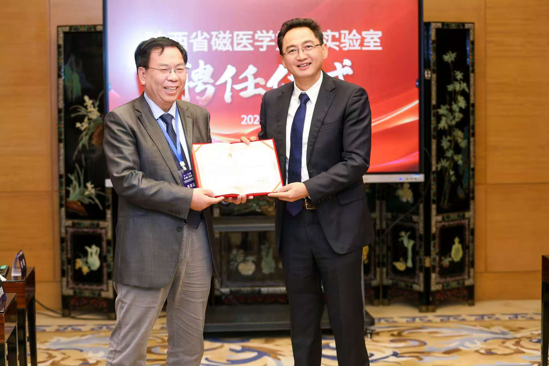 此外,为表彰沈伟明教授在磁外科领域的执着探索及创造性贡献,陕西省磁医学重点实验室聘其为特聘教授,吴荣歉教授颁发聘书。